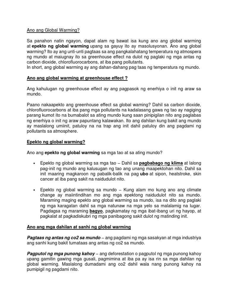 Sanhi At Bunga Ng Global Warming