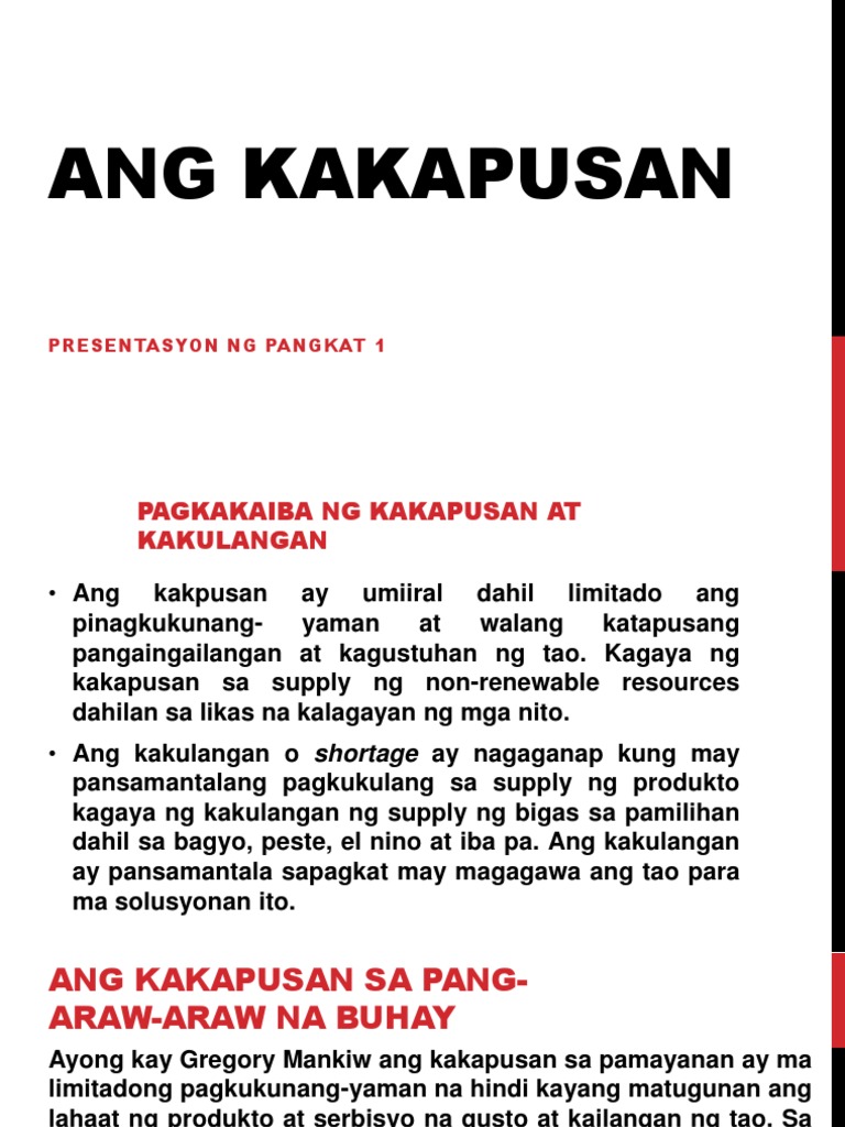 Kaibahan ng Kakulangan sa Kakapusan Download Now Download. Halimbawa kailangan mo ng limang mansanas ngunit wala ka ni isa. Samakatuwid maraming suliranin ang kinakaharap at kakaharapin pa.