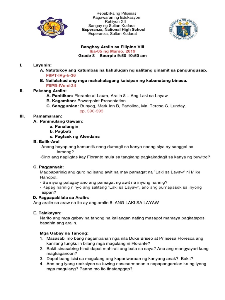 Banghay Aralin 8 Laki Sa Layaw Pdf