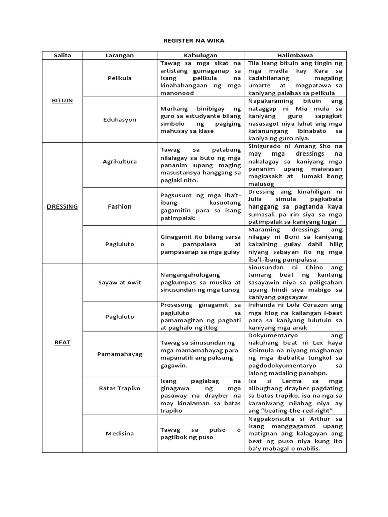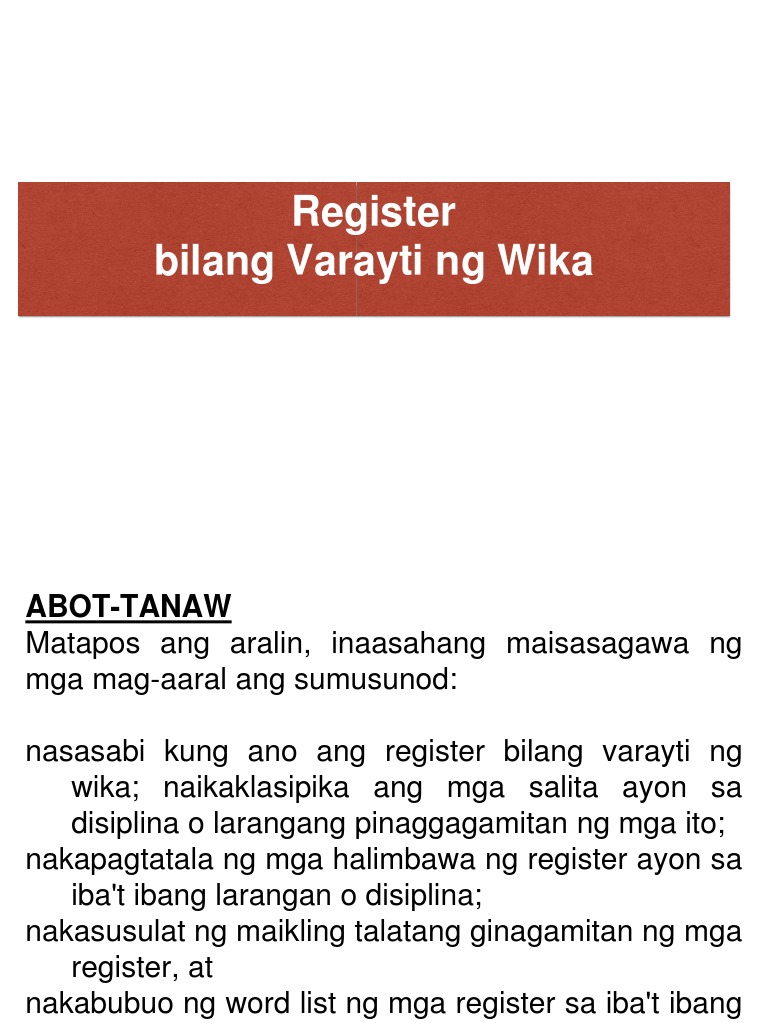 Register Na Wika Kahulugan At Mga Halimbawa Pdf