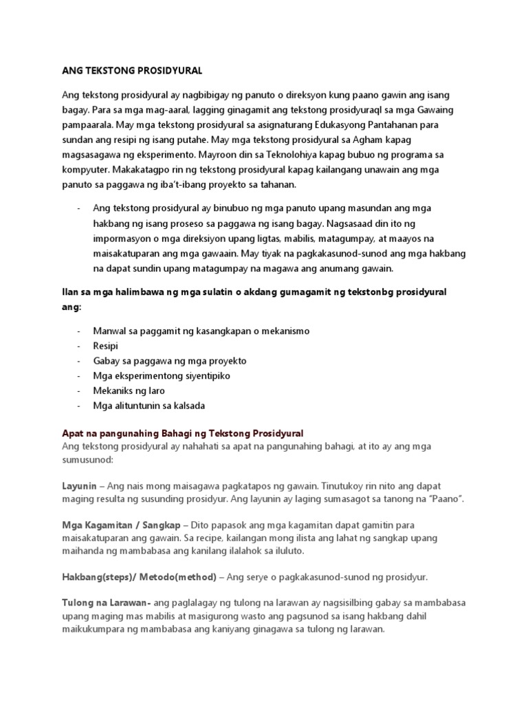 We Halimbawa Ng Tekstong Prosidyural Essay have experienced full-pro writers standing by to give you words that work for you. Sa tekstong prosidyural na aming binasa at sinuri ay mayroon kaming mga pahayag na positibo at negatibo batay sa kung paano inihayag ng may-akda ang kaniyang teksto. Nagagamit ang cohesive device sa pagsulat ng sariling halimbawang teksto impormatibo deskriptibo 6.